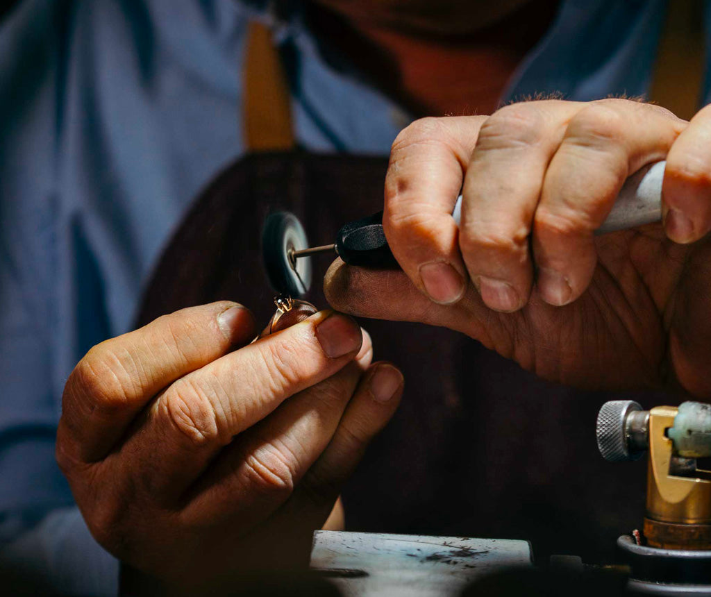 I gioielli sono interamente realizzati a mano e ogni fase di lavorazione, dal disegno iniziale fino alle ultime finiture, è curata nei minimi dettagli.
