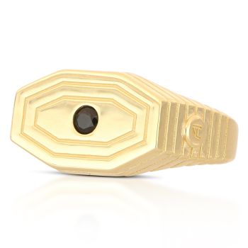 Aggiungi un tocco di eleganza al tuo look con questo anello a scudo con intrigante dettaglio in onice. Realizzato in pregiato oro 18 kt, questo anello è perfetto per aggiungere un tocco di classe e stile a ogni outfit. Non passare inosservato, porta il tuo gioco di gioielli a un livello superiore con questo anello a scudo!