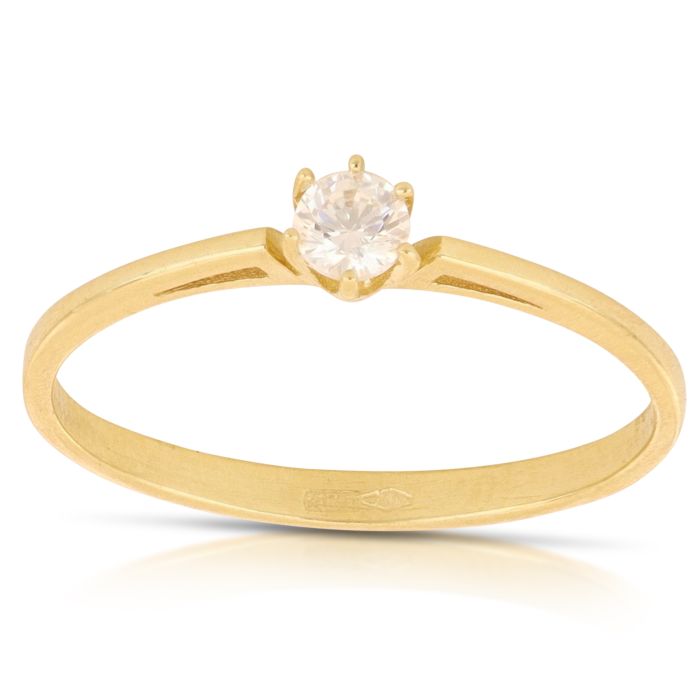 Il tuo dito brillerà con l'anello solitario in oro 18 kt! Un gioiello elegante e di alta qualità, perfetto per esprimere il tuo amore o aggiungere un tocco di lusso al tuo look. Un investimento che durerà per sempre, perché l'amore è eterno (e l'oro anche)!