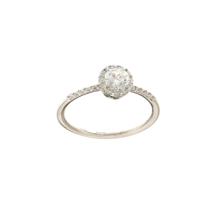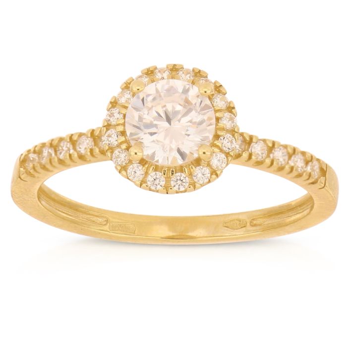 Aggiungi un tocco di brillantezza e bellezza al tuo look con questo anello solitario in oro 18 kt con zirconi. Perfetto per qualsiasi occasione, il design elegante e il luccichio dei zirconi ti faranno risplendere come una stella .
