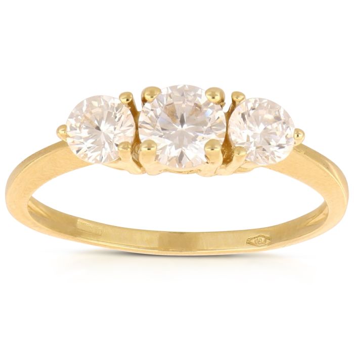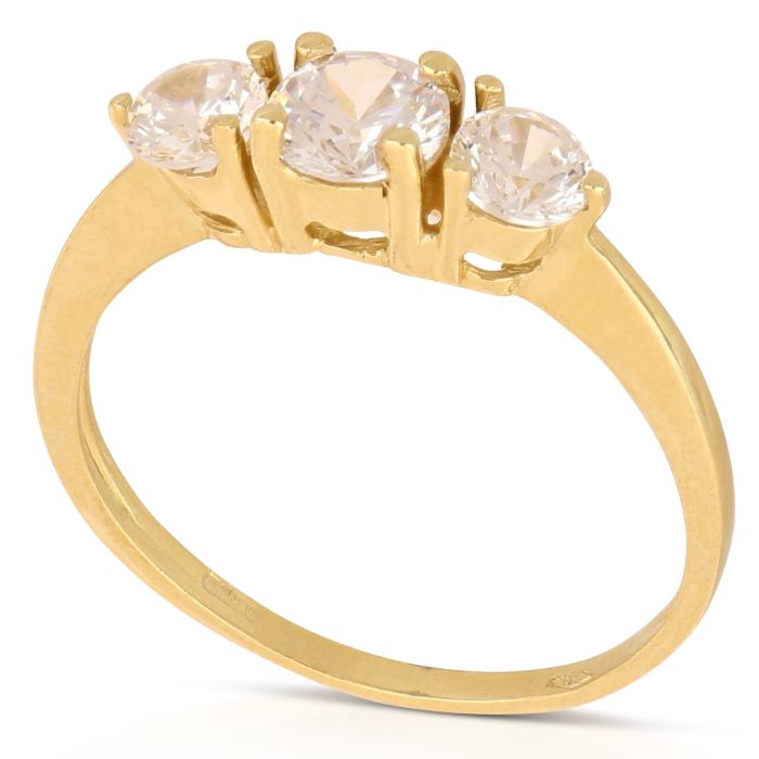 Aggiungi un tocco di luccichio al tuo stile con questo anello in oro 18 kt con tre splendidi zirconi incastonati. Perfetto per aggiungere un tocco di glamour a qualsiasi outfit. Non passa inosservato!