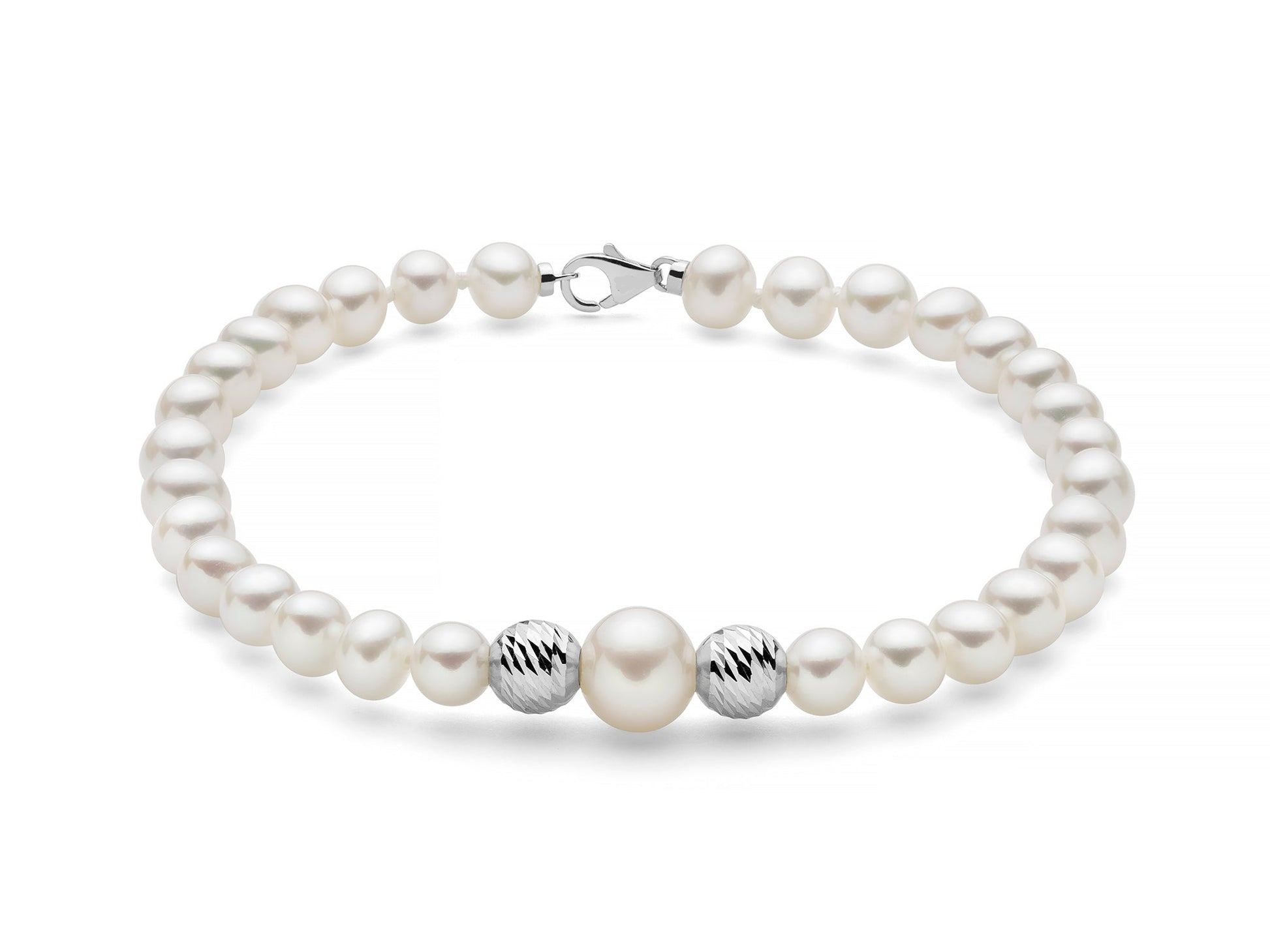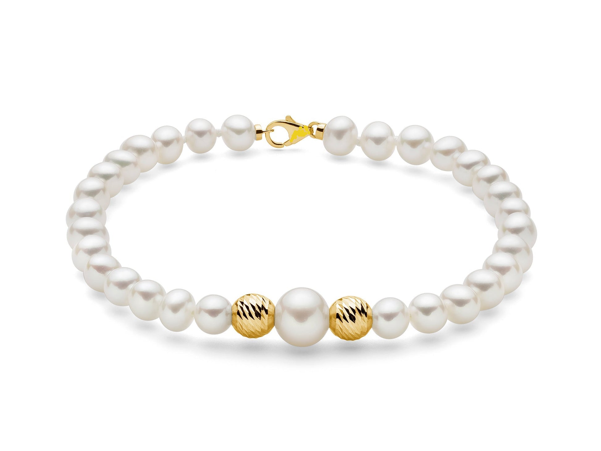 Bracciale di perle Oriente con 2 sfere in oro 18 kt sfaccettate.