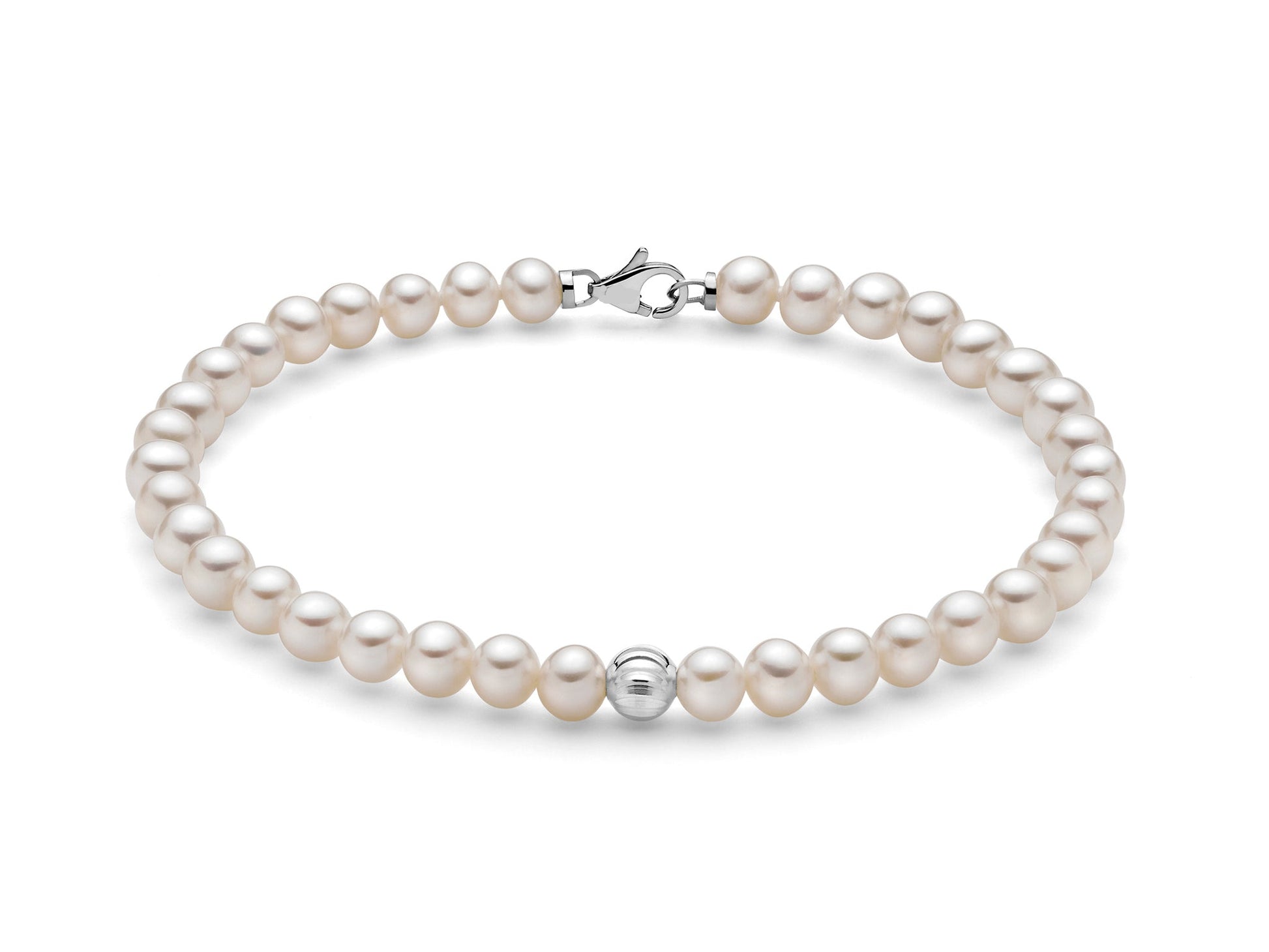 Bracciale di perle Oriente con sfera centrale in oro 18kt lucida.