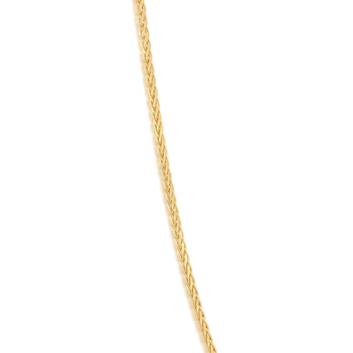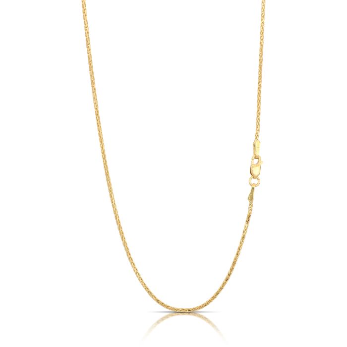 Catena in oro giallo 18kt, modello spighetta quadrata sfaccettata, lucida, vuota, larghezza max cm0,10