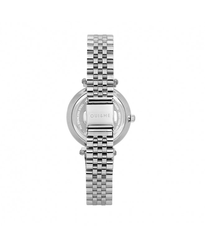 Orologio solo tempo da donna di Oui&Me della collezione Amourette. Modello con cassa tonda in acciaio con finitura diametro di 32 mm. Orologio con bracciale in acciaio. Solo tempo con movimento al quarzo, resistenza all'acqua di 5 atm.