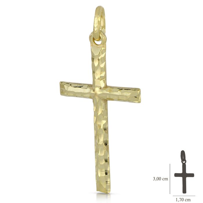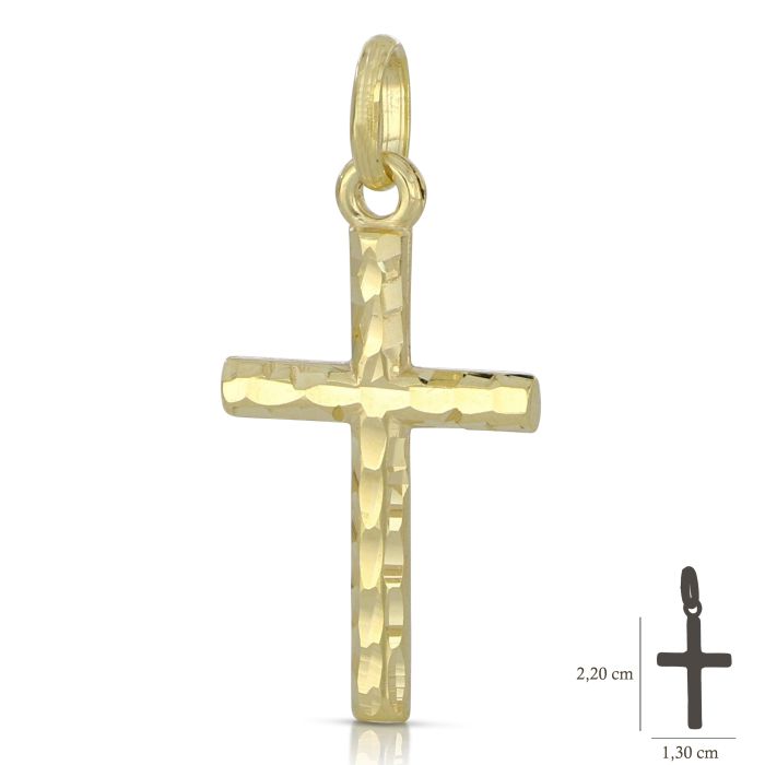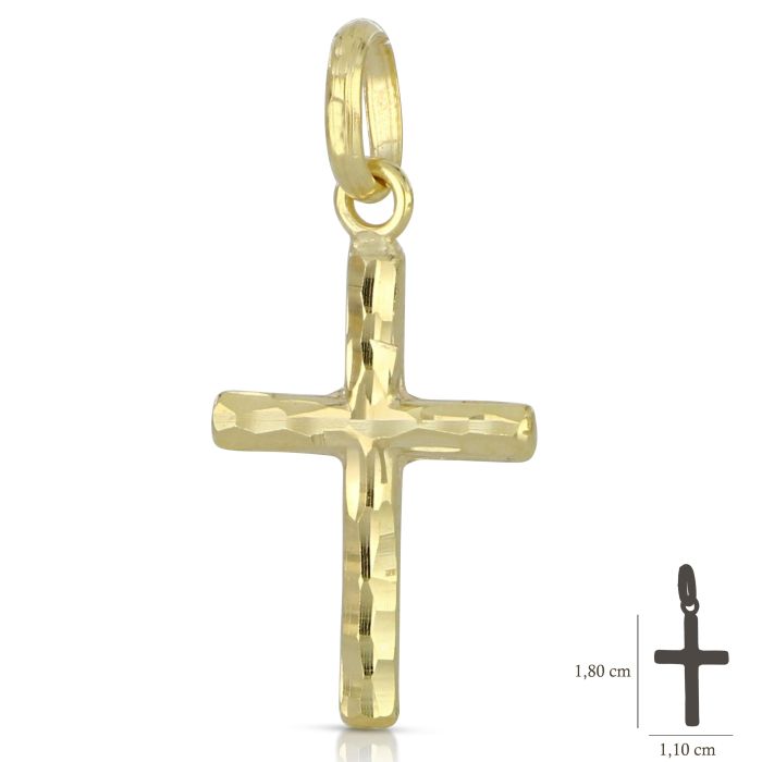 Croce in oro giallo, canna tonda, lucida e sfaccettata