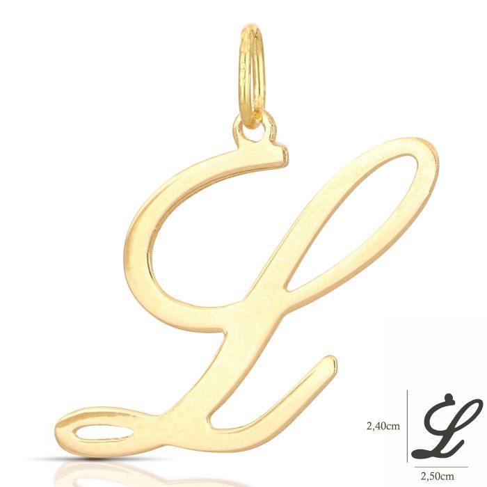 Pendente in oro giallo, lettera L in corsivo, lucido a lastra