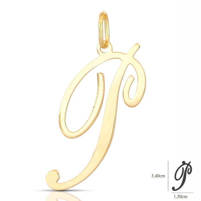 Pendente in oro giallo, lettera P in corsivo, lucido a lastra