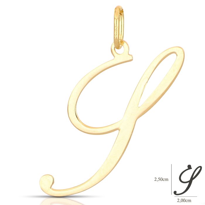 Pendente in oro giallo, lettera S in corsivo, lucido a lastra