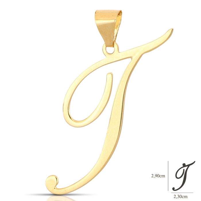 Pendente in oro giallo, lettera T in corsivo, lucido a lastra